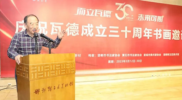 紙書秦磚,墨透漢瓦。 而立瓦德,未來可期。 這是邯鄲藝術界一場別開生面,前所未有的書畫聯誼大展。來自邯鄲、黃石、宣城三地書法家、美術家匯聚古城,展出了他們精心創作的書畫作品。 3月14日15:18開幕式正式開始。