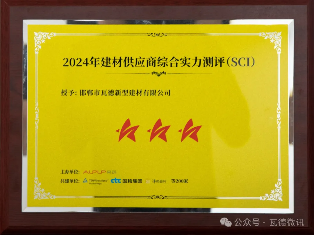 2024年4月8日,“5光同行 聚星閃爍”采筑聯合者大會在重慶順利召開,現場重磅發布2024年供應商綜合指數SCI測評結果,獲全場數百位政府單位、采購商、供應商、行業協會、領域專家等點贊認可。 瓦德新材在本次SCI綜合測評中獲評“三星供應商”。本次SCI測評共有2600余家參評單位,其中僅197家
